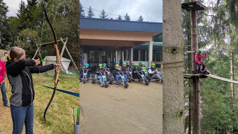Adrenalinreich ging es im Hochseilgarten weiter. Klettern, Bogenschießen und Axtwerfen boten die perfekte Mischung aus Herausforderung, Spaß und gegenseitiger Unterstützung. Auch der zwischenzeitliche Regen konnte uns die Stimmung nicht verderben.