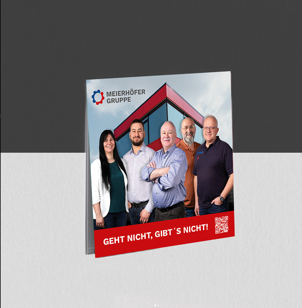 Kompakt, klar, hochwertig: Unternehmensflyer für die Meierhöfer Gruppe